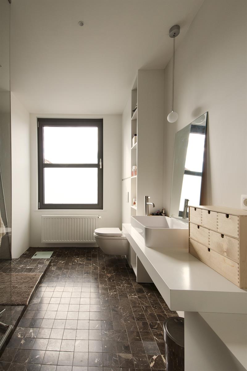 GARE DU MIDI - ANDERLECHT - Magnifique Appartement entièrement rénové par architecte en 2020 de +/-86m2. Actuellement immeuble mixte de 3 unités reconnues, RU en ordre. Appartement au 3ème+4ème étage de 84m2 est aménagé en duplex. Il se compose: hall d'entrée 5m2 avec dressings sur mesure, living 37m2 avec cuisine américaine entièrement équipée, salle de douche à l'italienne en marbre de 8,5m2 avec wc, et chambre sous combles de +/-36m2 avec grenier. Possibilité de réaliser 2 chambres dans ces combles. L'appartement du 2ème étage de +/-50m2 est également à vendre 170 000€ et peux être associé au duplex pour en faire un appartement 3/4 chambres et 2 SDD. Cette magnifique demeure très lumineuse, dans une rue calme et arborée, a été entièrement rénovée par des professionnels - Finitions de grandes qualités : Châssis Double-vitrage en Alu, parquet chêne aux étages, . Dressings et cuisine sur mesure. Façade rue ravalée. PEB F. Parking non. Chaudière gaz commune. Aucun travaux à prévoir. Nouvelle copropriété. Frais de raccordement et participation acte de base de 950€. Facilité transports en commun à 5 min : Metro - Tram -Thalys - Eurostar - Brussels Airport