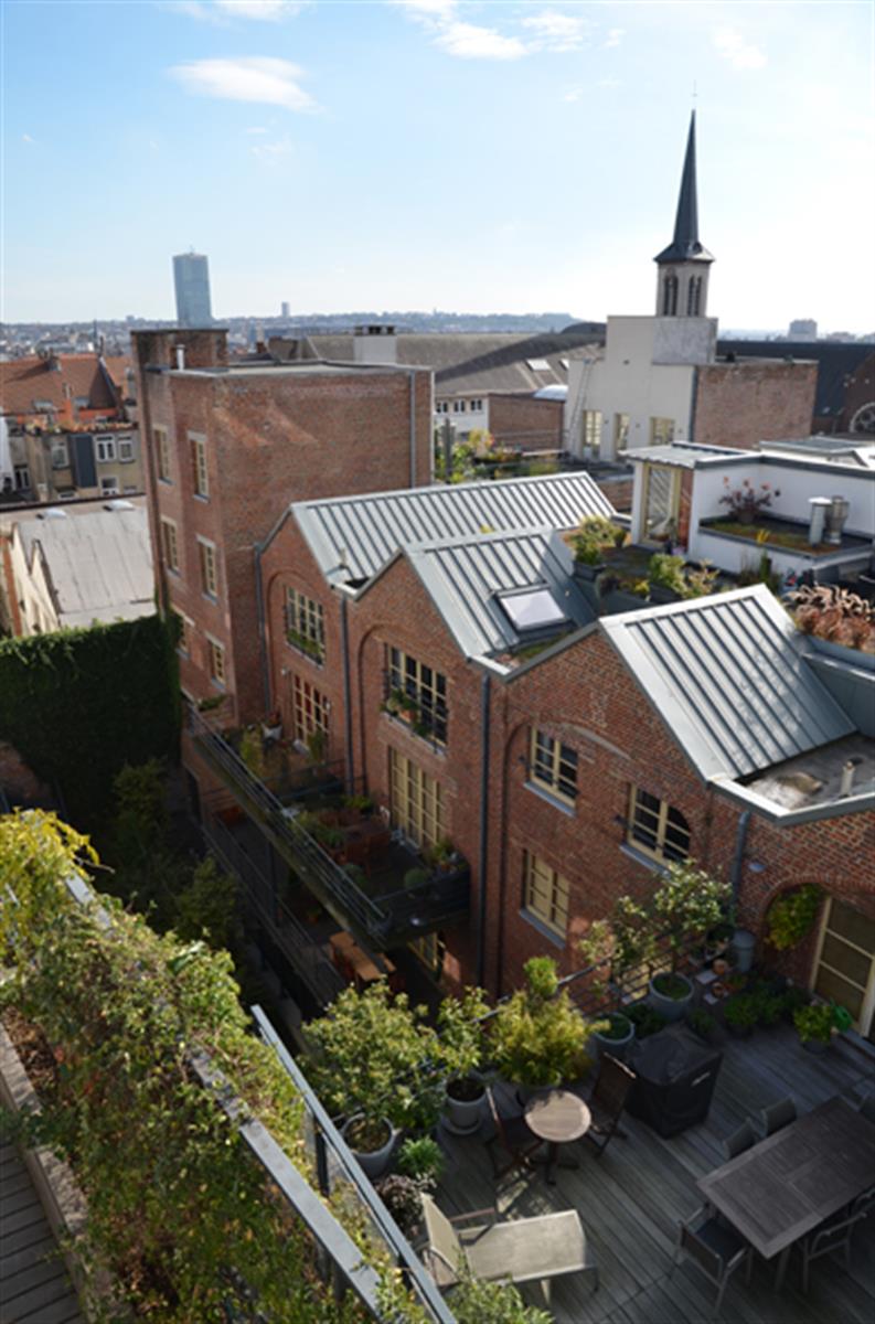DUCHESSE de BRABANT - Dans une ancienne Malterie rénovée en 2005, venez découvrir ce loft en Duplex Penthouse traversant , en coeur d'îlot, orientation S0 et NE. Au 1er niveau de 95m2 il est composé de 2 chambres avec dressing sur mesure, dont une avec entrée indépendante, 1 salle de bains avec baignoire et douche, un grand living, un espace bibliothèque et un wc. Au second niveau, un espace de vie de 45m2 avec cuisine sur-mesure corian/laque, s'ouvrant sur une terrasse végétalisée de 45m2. Une seconde terrasse peut être aménagée en solarium de 45m2. Sol en résine polyuréthane, chauffage au sol, chaudière à condensation Oertli, Luminaires Waldmann, Deltalight, Kréon et Modular. Cave 28m2 à 20 000€. Parking 30 000€ en suppl. PEB D+ - Très belle Copropriété internationale, proche des transports : Metro gare de L'Ouest, bus 86 menant en 5 min à Dansaert, Tram 82 menant gare du Midi en 10 min. A découvrir