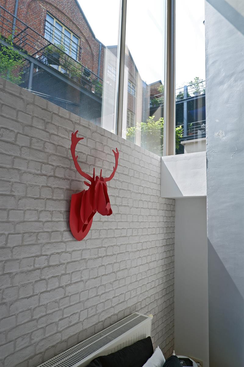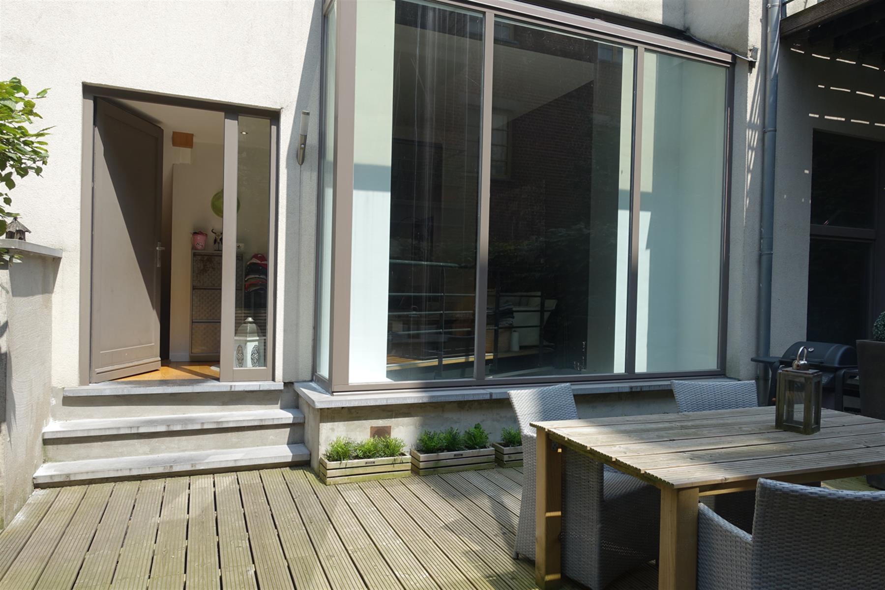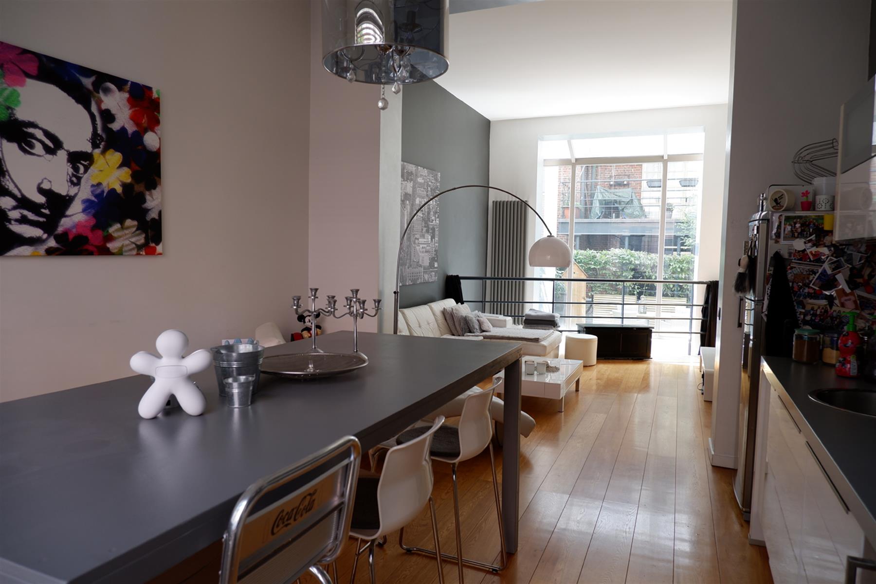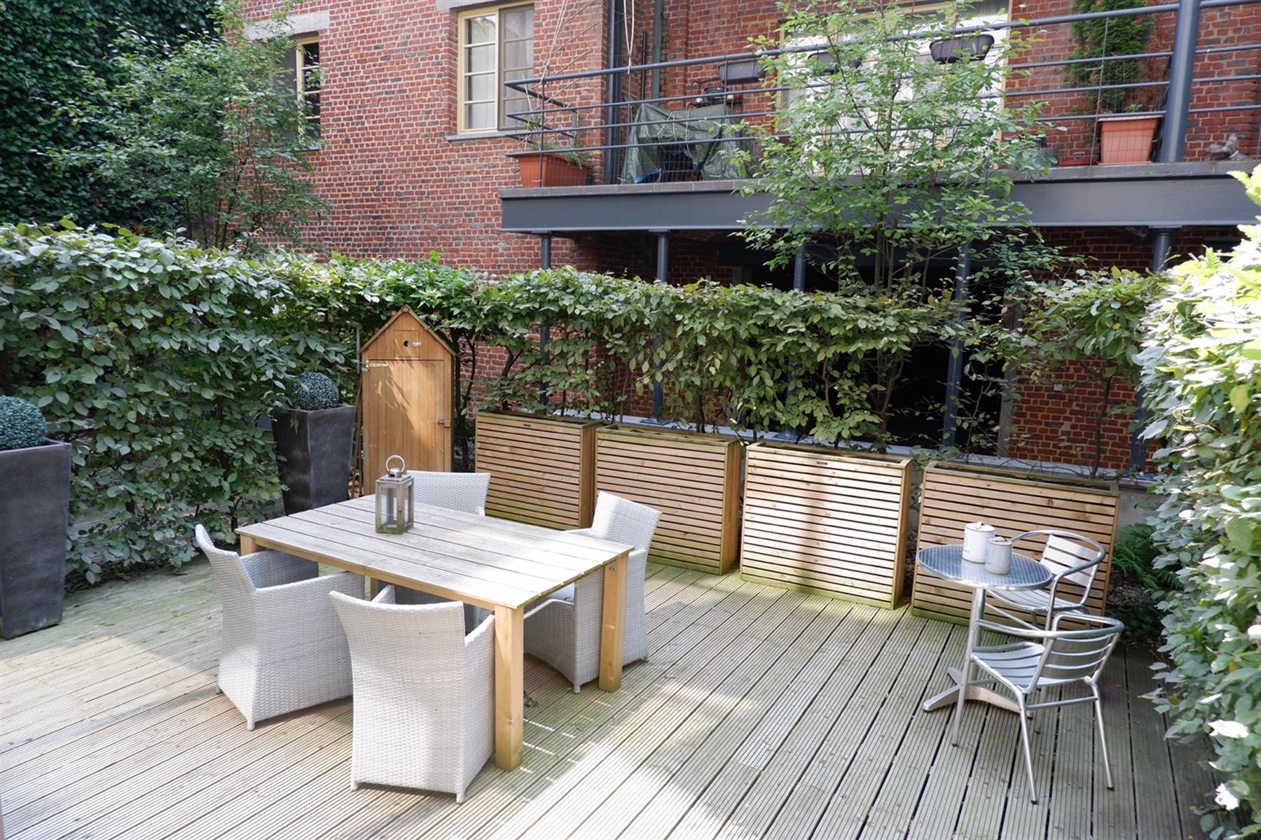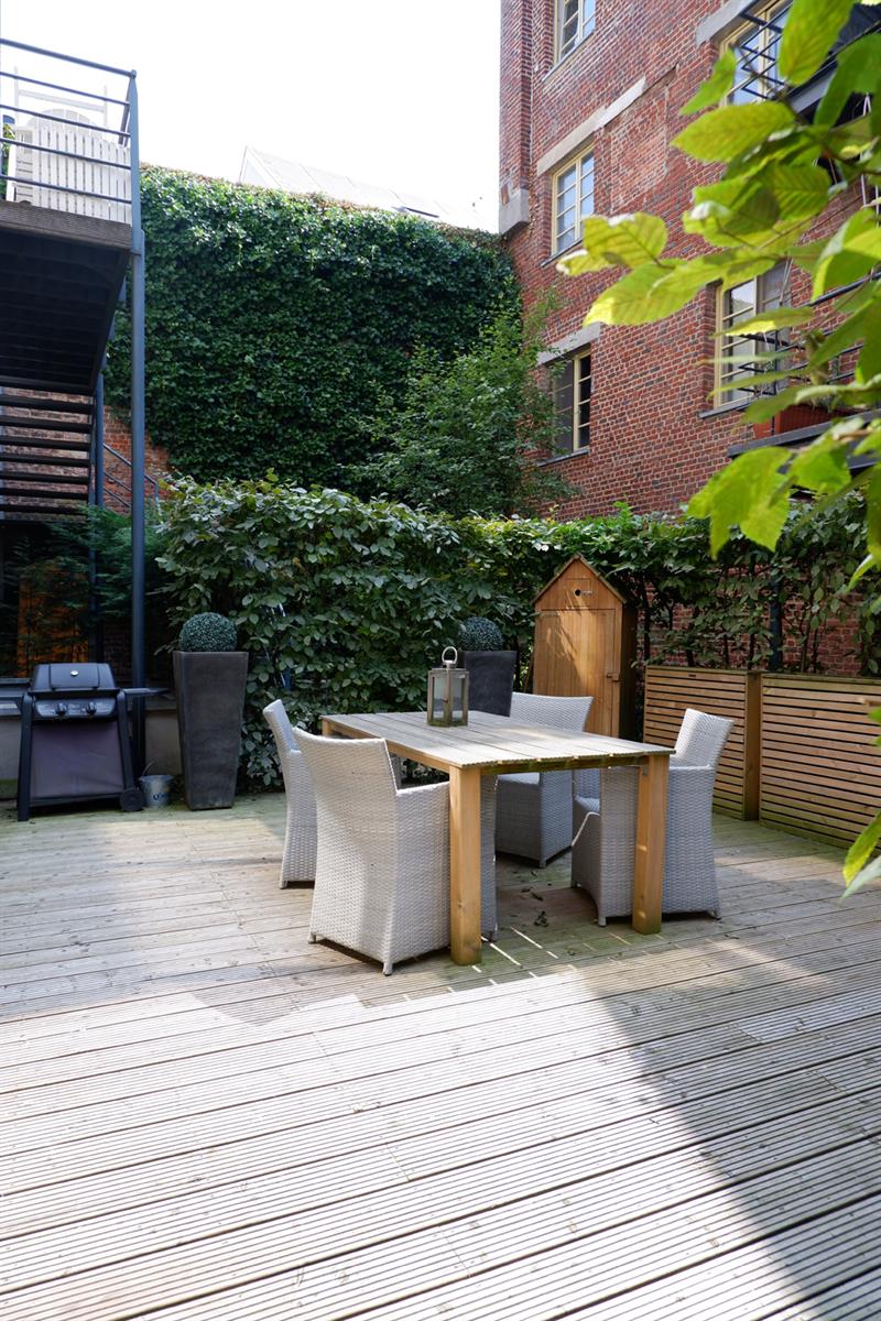 BXL CANAL - Très lumineux Loft Duplex 110 m2 au sein de la magnifique Brasserie Carlier rénovée entre 2005-2007. Ce loft est aménagé sur 2 niveaux. Au RDC, entrée sur un living de 40m2 avec haut.sous plafond de 3,56m, en partie sous véranda, avec une cuisine américaine entièrement équipée. Le living s'ouvre sur 36m2 de jardin privatif aménagé en terrasse. A l'entresol, côté jardin, 1 chambre de 20m2 avec sa salle de douche , et côté rue 1 chambre de 19m2 avec sa salle de douche, une buanderie et un wx séparé. La véranda Sud-ouest offre un puits de lumière éclatant sur la chambre côté jardin. Parquet en chêne, Chaudière à condensation, double vitrage châssis bois. Parking en supplément 25 000€. Copropriété internationale. Au calme.