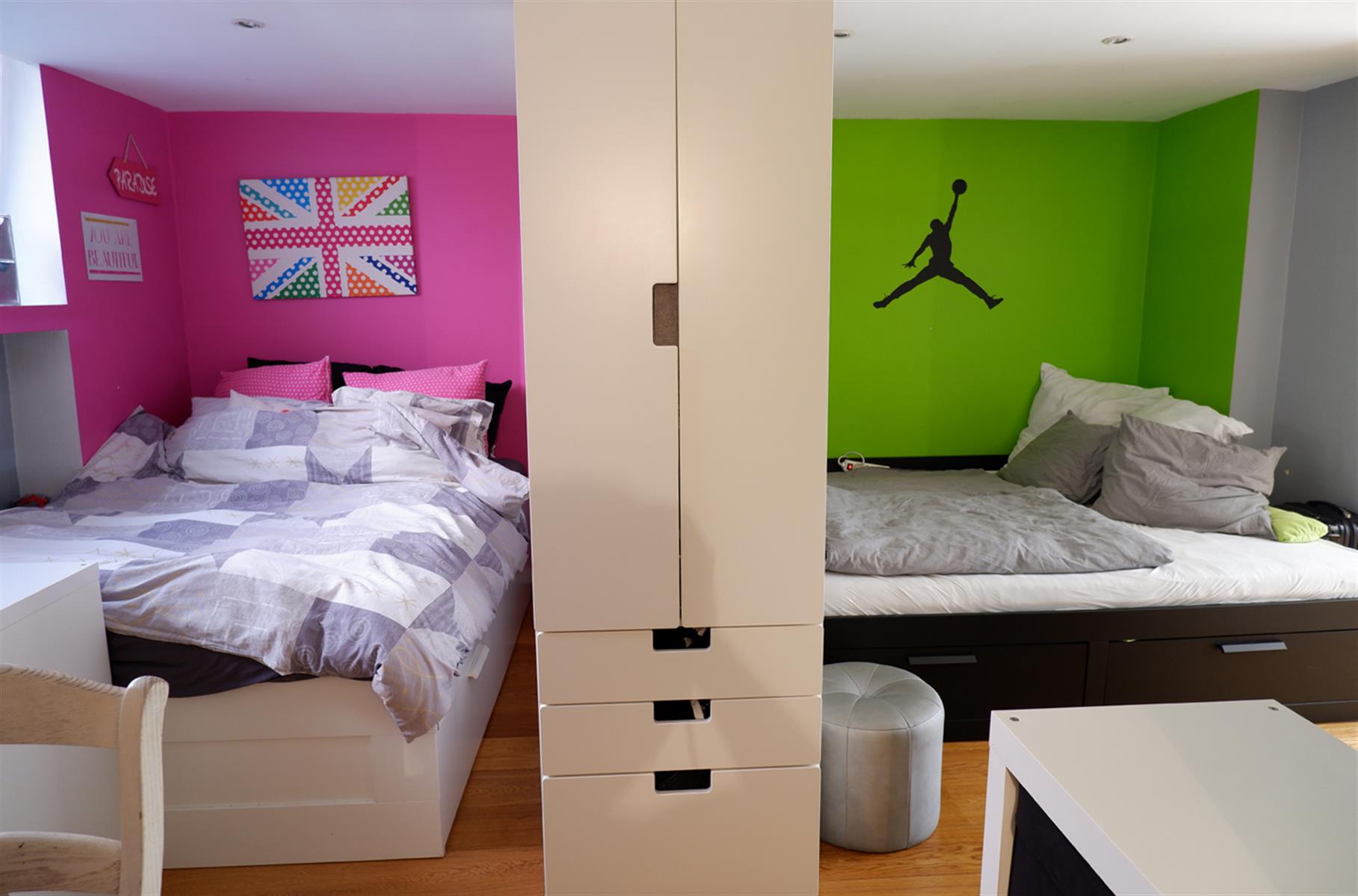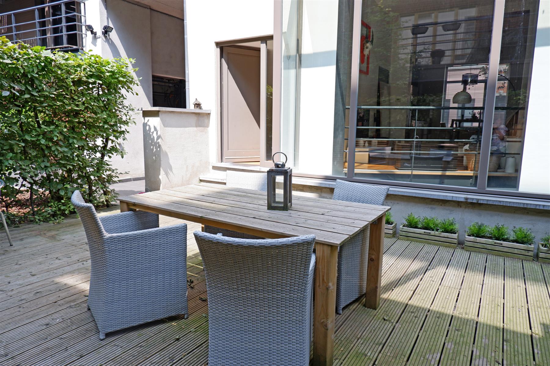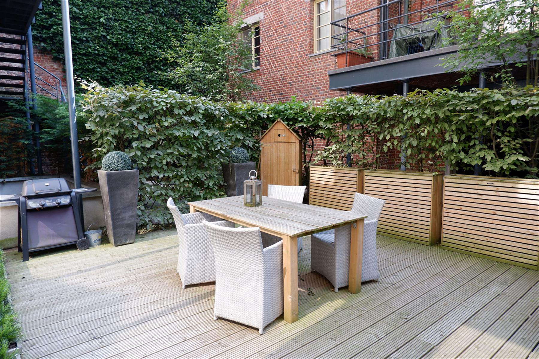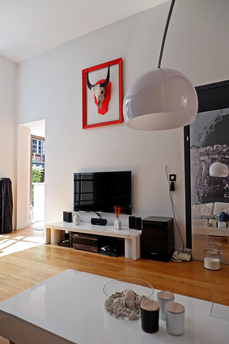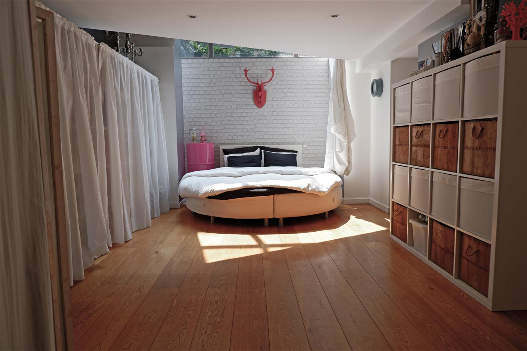 BXL CANAL - Très lumineux Loft Duplex 110 m2 au sein de la magnifique Brasserie Carlier rénovée entre 2005-2007. Ce loft est aménagé sur 2 niveaux. Au RDC, entrée sur un living de 40m2 avec haut.sous plafond de 3,56m, en partie sous véranda, avec une cuisine américaine entièrement équipée. Le living s'ouvre sur 36m2 de jardin privatif aménagé en terrasse. A l'entresol, côté jardin, 1 chambre de 20m2 avec sa salle de douche , et côté rue 1 chambre de 19m2 avec sa salle de douche, une buanderie et un wx séparé. La véranda Sud-ouest offre un puits de lumière éclatant sur la chambre côté jardin. Parquet en chêne, Chaudière à condensation, double vitrage châssis bois. Parking en supplément 25 000€. Copropriété internationale. Au calme.