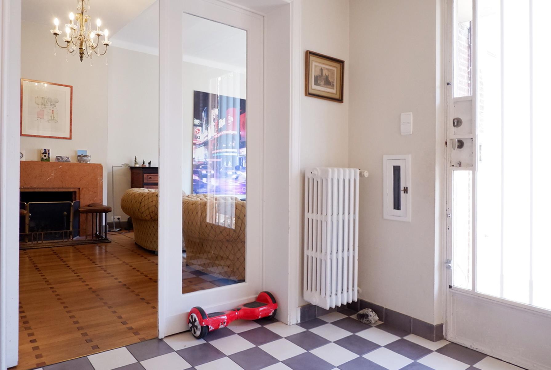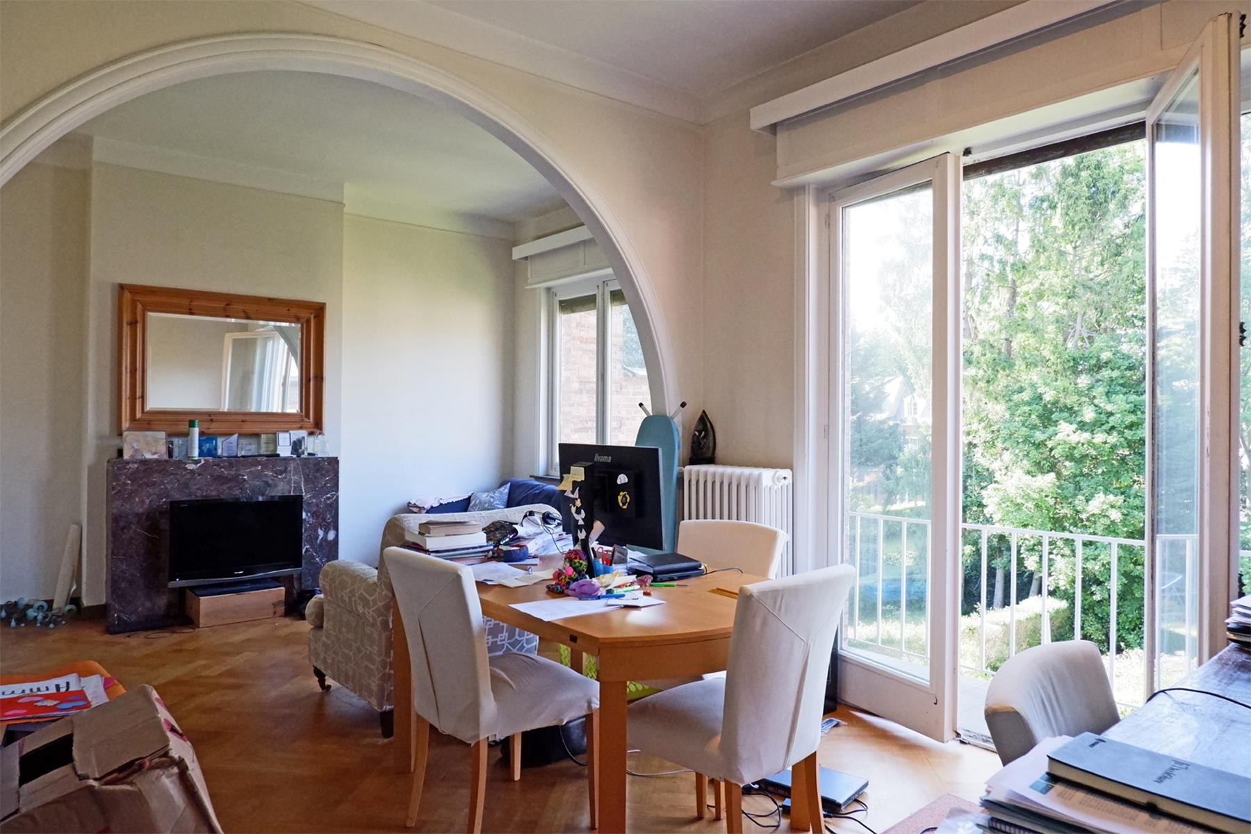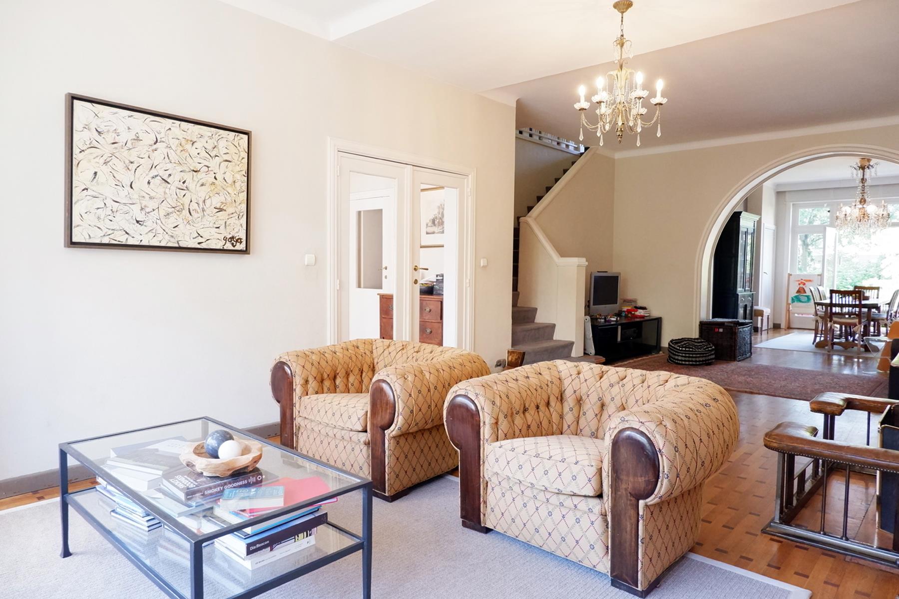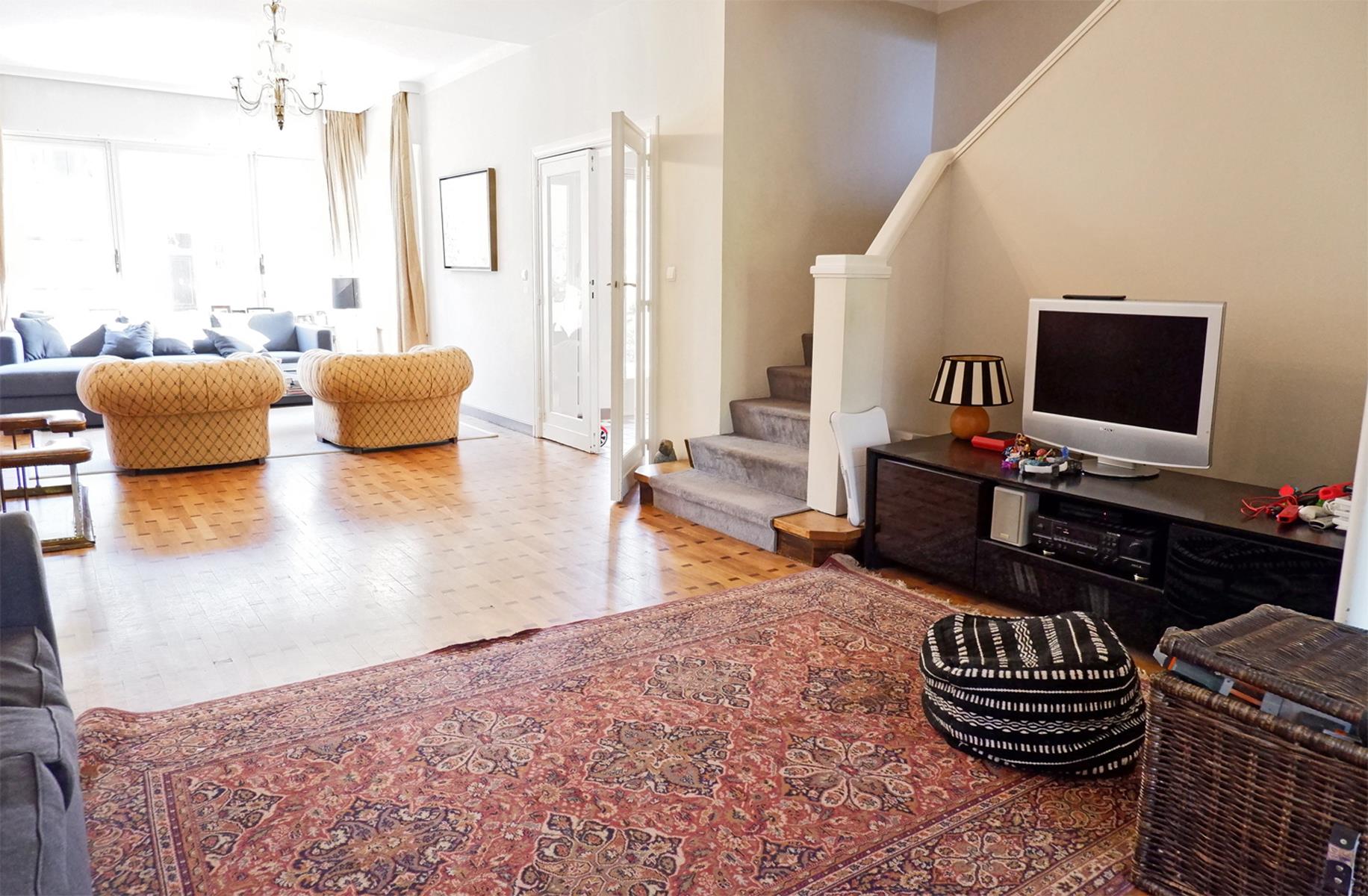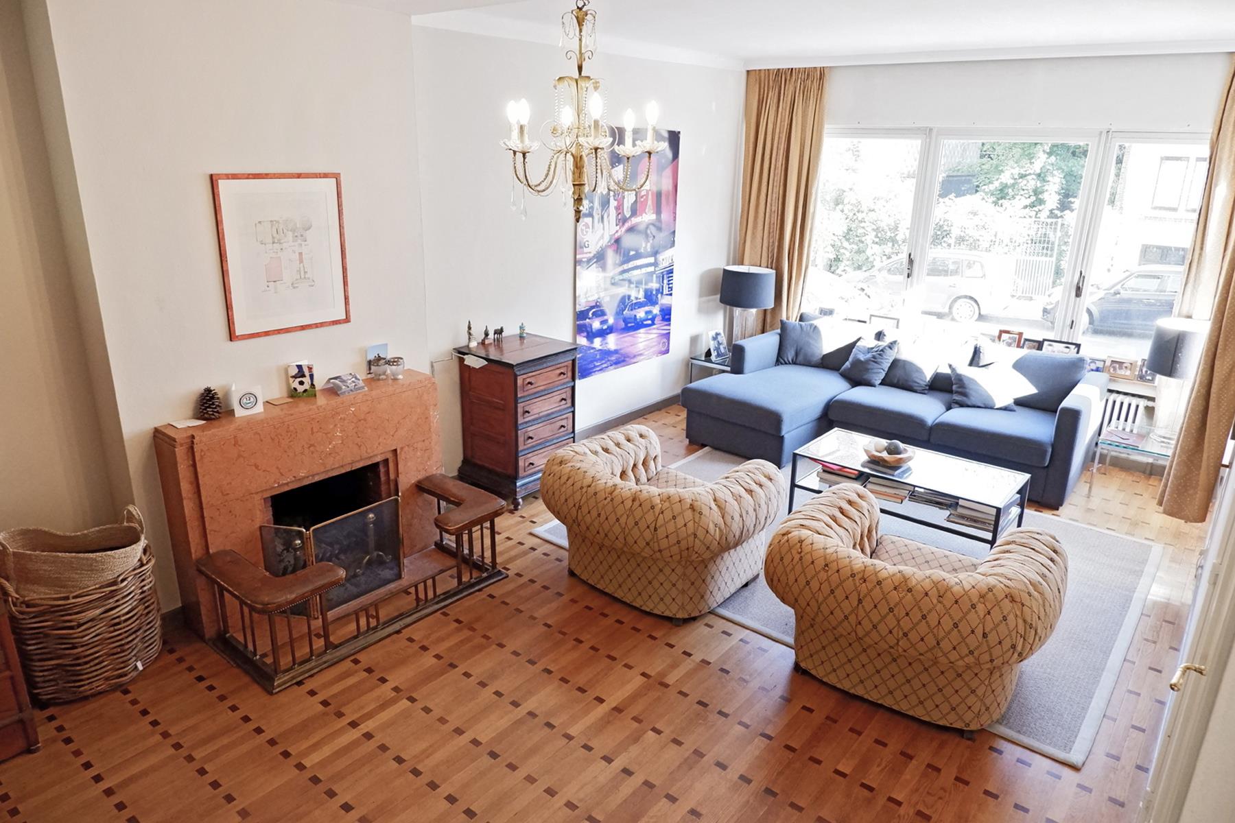 HIPPODROME DE BOITSFORT - VENDU Situation recherchée pour cette lumineuse Maison de famille +/-365m2 net, 5 chambres, avec jardin +/-140m2. Edifiée en 1936 par l'architecte Léon Mercenier au sein du square des Nations, elle est implantée en décalage ce qui en fait une demeure très lumineuse. Ses détails architecturaux ont été conservés malgré les remises aux normes techniques nécessaires en 2004. Maison très spacieuse avec vues sur jardins arrières et square. Vous apprécierez son vaste living traversant de 61m2 sous 3m de hauteur, prolongé d'une terrasse surplombant le jardin tout en y donnant accès. Terrasse également accessible depuis la cuisine attenante au living. Reparties sur les 2 étages supérieurs 5 chambres: ch 12m2, ch 13m2, ch 27m2 avec balcon côté jardins, ch 24m2 avec SDB privée+terrasse Sud 12m2, ch 18m2 avec dressing. Rez-de-jardin 100m2 acccueillant un garage 2/3 voitures, buanderie avec accès jardin, cave à vins, chaufferie avec cave. Ce rez-de-jardin offre de vastes possibilités de réaménagement ainsi que le grenier accessible de 30m2 net. Forêt de Soignes, Hippodrome de Boitsfort et son golf, Bois de la Cambre ainsi que futur club fitness Aspria feront le bonheur des sportifs à 5 min à pieds. A proximité des transports:Gare de Boondael, Tram 8 et Gare de Boitsfort. Ecoles: ULB - école Européenne - de Decroly. Proches Commerces et marchés de qualités. PEB G. CE conforme. Vrai havre de paix.