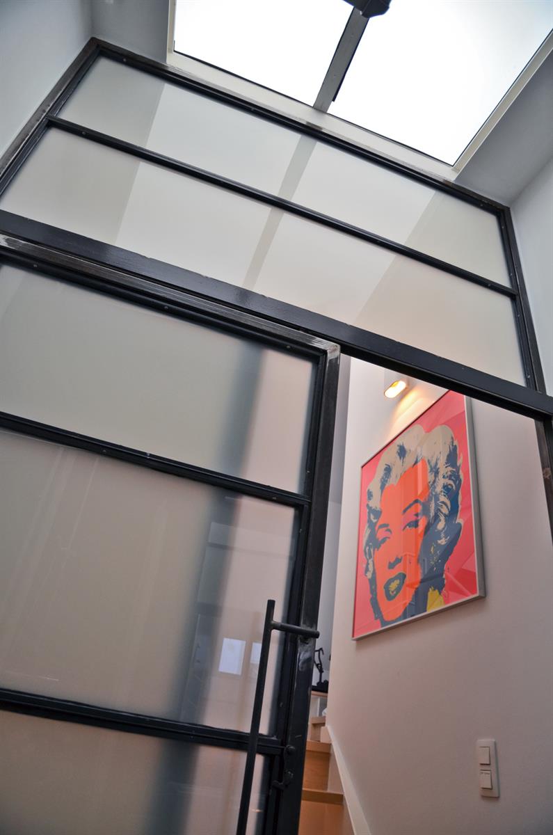La lumière traverse de haut en Bas la maison à travers de judicieux paliers en verre satinés.